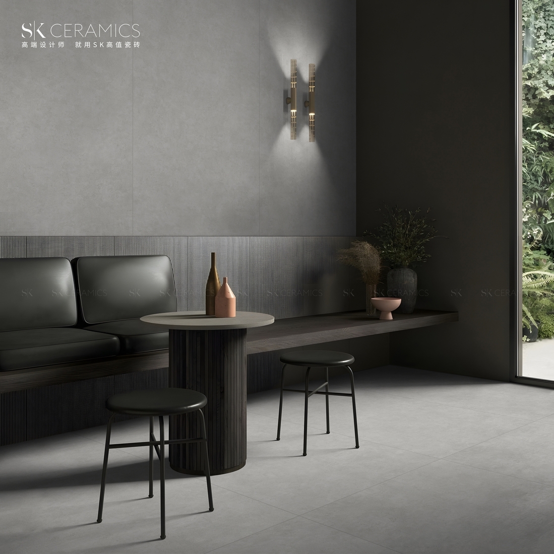 水泥灰黑,融肅靜平和與一體,這種溫和安靜的融合浸潤著每一個欣賞者的心靈,于靜謐和諧中滲透出那種隱于形卻顯與境的迷人氣質(zhì)。