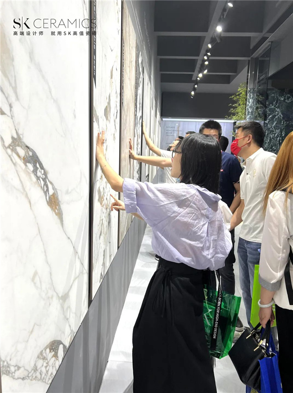 SK瓷磚亮相華夏展館,不僅吸引眾多設計師、經銷商時尚打卡,鑒賞最新原創產品,探討最新設計流行趨勢,而且吸引了眾多行業知名媒體紛紛到展位進行探展與采訪。